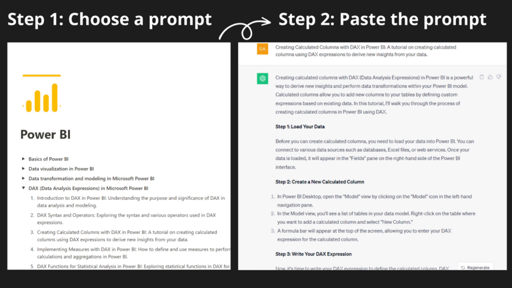 - Information Generation: Beyond pre-defined prompts, ChatGPT can generate detailed explanations, examples, and guidelines tailored to your specific data visualization needs. Simply describe your problem or question, and ChatGPT will provide insightful responses.