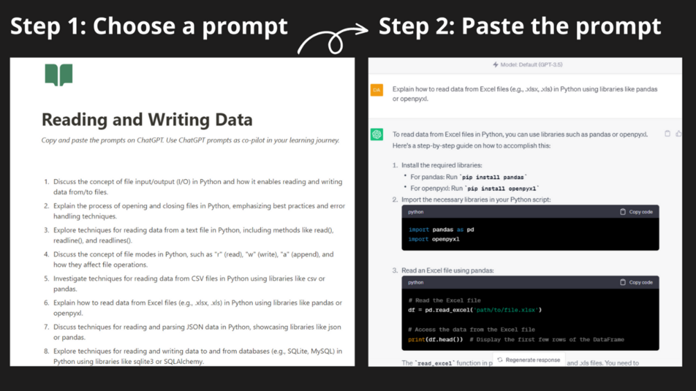 Use ChatGPT prompts as a co-pilot in your learning journey.