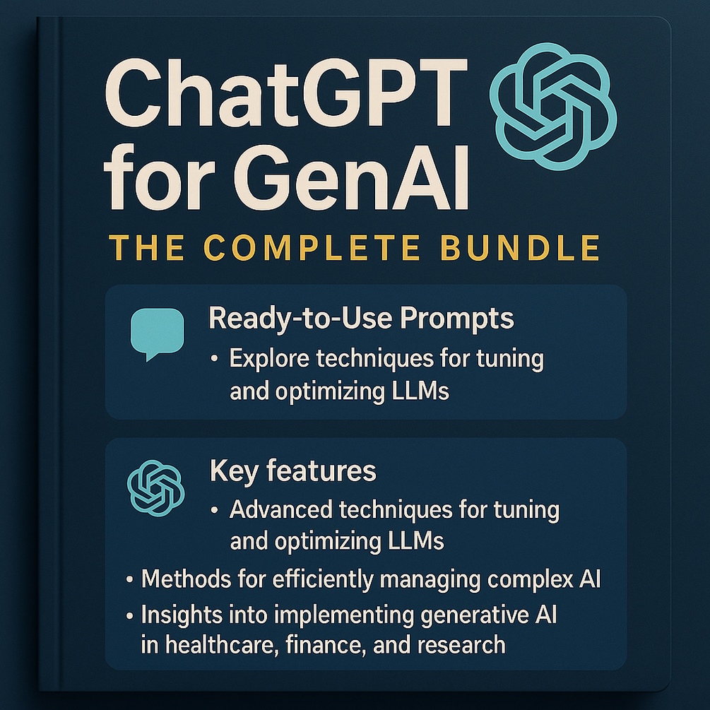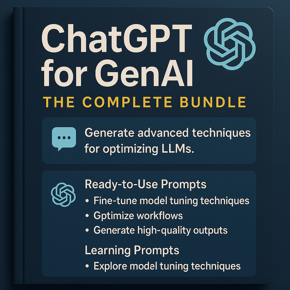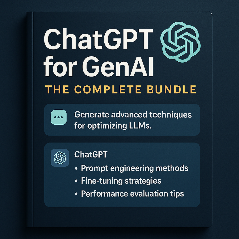 ChatGPT for GenAI - The Complete Bundle guide is designed to elevate your mastery of generative AI, providing a range of advanced prompts tailored for experienced professionals and enthusiasts. If you are already familiar with the basics of generative AI models and seek to delve deeper into the more sophisticated aspects of GenAI, this guide is for you. It empowers you with expert-level techniques, strategies, and best practices to optimize AI performance across diverse applications.